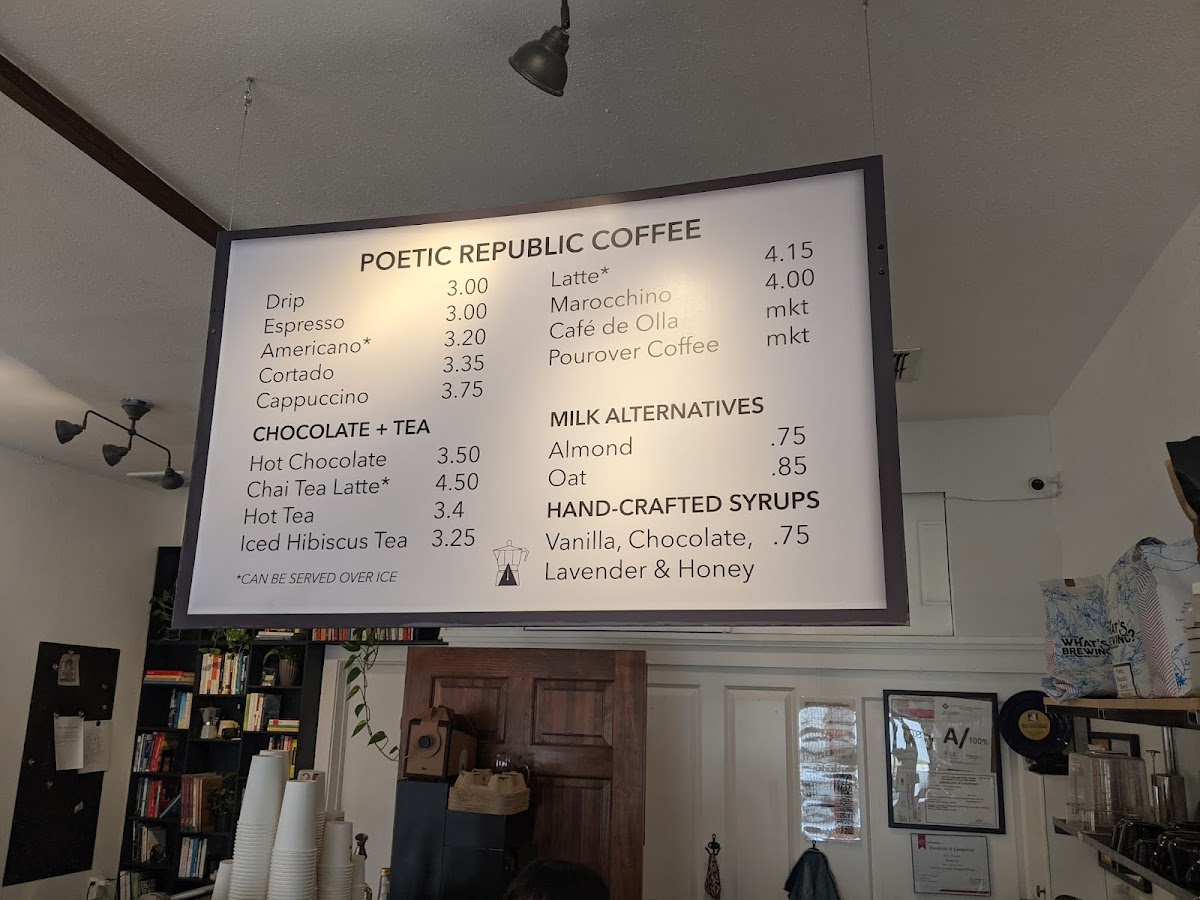 Welcome to Poetic Republic Coffee Roasters, a charming sanctuary nestled in San Antonio, Texas. This independent coffee shop stands out not only for its superb brews but also for its inviting atmosphere and attentive staff. Customers, such as Arlene Ramos, rave about the delightful lavender vanilla latte, calling it a "hidden gem." The menu is rich with unique drink offerings that celebrate earthy flavors without being overwhelming.